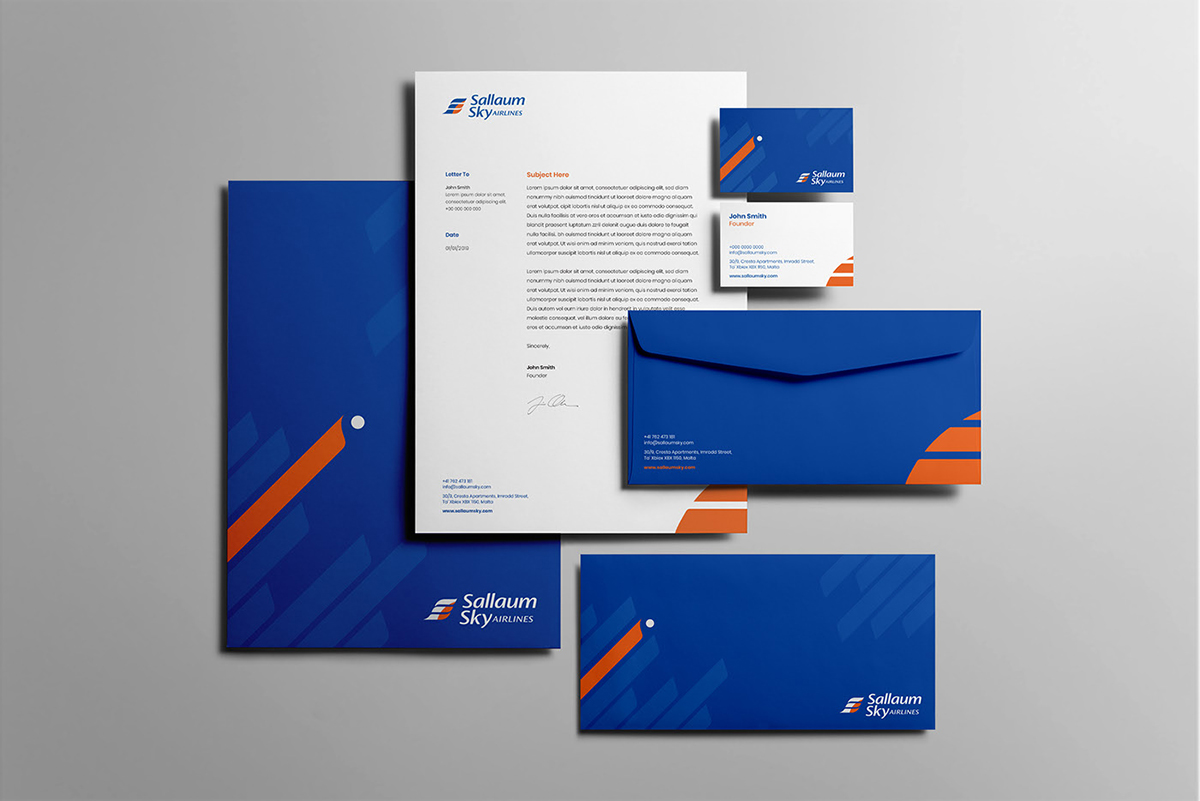 Many palettes were discussed, and several designs were considered until we landed on three main colors that best represent Sallaum Sky’s identity: Blue, white, and orange – the sky, the sea, and the sun.